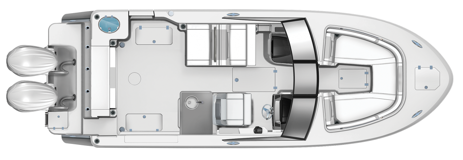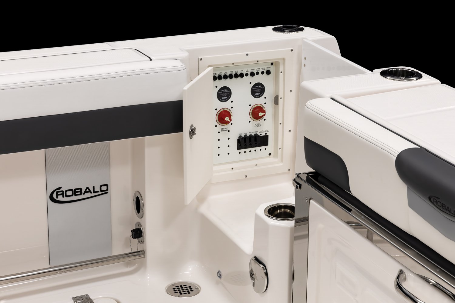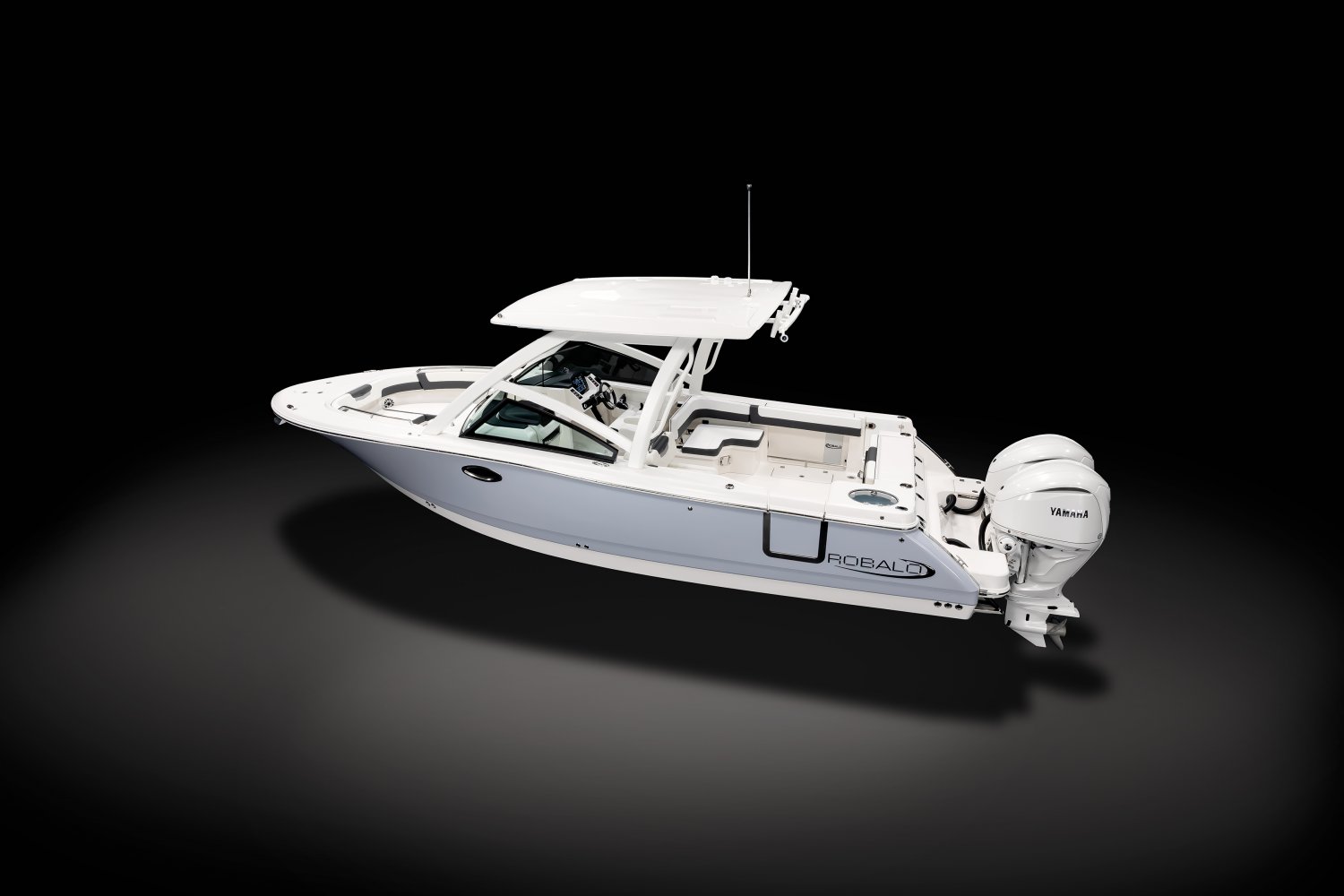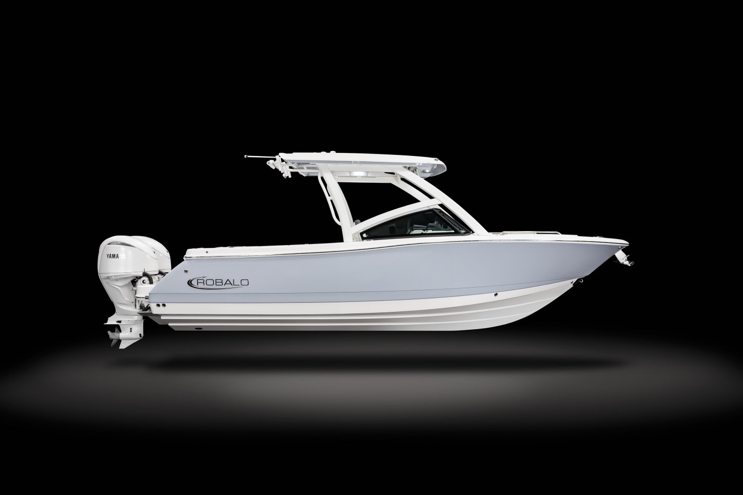 Hull Side Gelcoat - Alloy Gray Twin Yamaha Four Stroke White F250XSB2 250HP 25" with Digital Electric Steering Yamaha Helm Master EX with Maneuverability Cockpit Interior - Harbor Gray Hardtop Underside Gel Color - Alloy Gray Forward Canvas Fly - Black Canvas Hardtop Enclosure Black Leather Wrapped Steering Wheel with Robalo Logo Dual Color LED Underwater Lights (2 each) JL Audio Sound System Upgrade Stainless Steel Drink/Rod Holders (2) Stainless Steel 20lbs Anchor Stowable Stainless Steel Side Entry Boarding Ladder Windlass Package 5 Year Premium Level Limited Component Warranty Water Ready with Twin Engine NMMA Grow Boating Fund Aluminum Tandem Axle Trailer with Aluminum Wheels and Bow V-Stop Spare Tire Kit - Aluminum Wheel