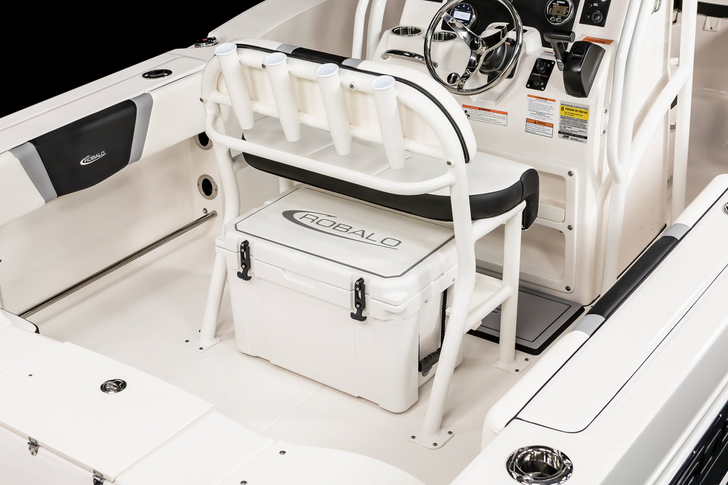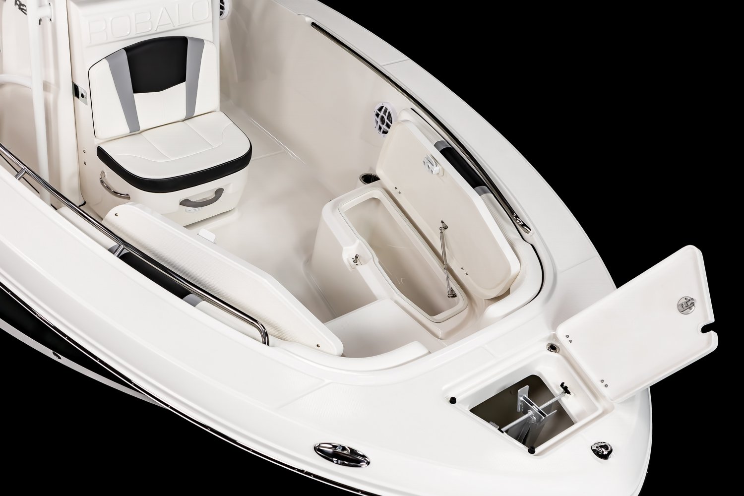 Aft Insulated Livewell (15 gallons) with Overboard Drain, LED Lighting, Blue Gelcoat Finish and Adjustable Flow Valve Aft Jump Seats with Folding Backrests and Custom Aluminum Hardware (Converts to Casting Platform)