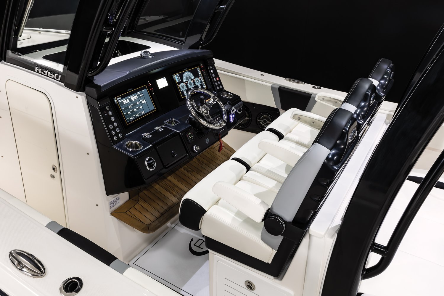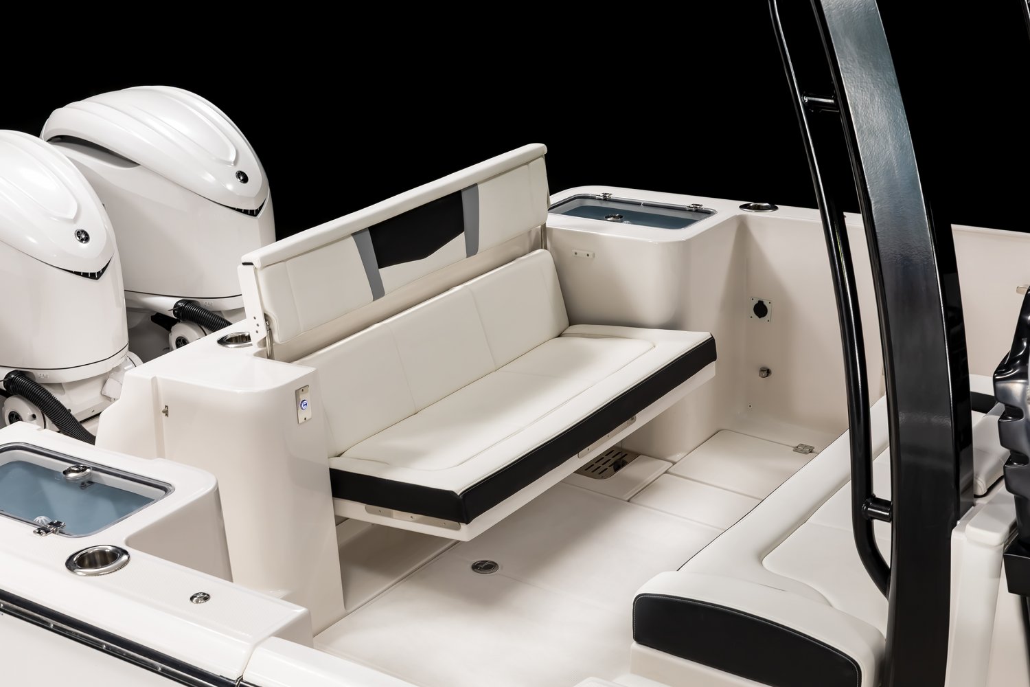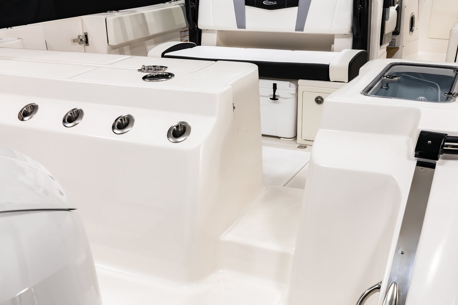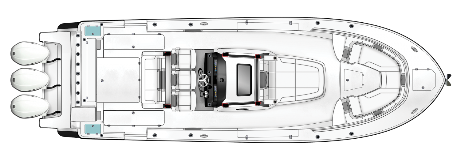 Whether you're trolling with hooks in the water or motoring through the tough stuff in search of a trophy catch, Robalo's R300 center console flagship sparks an adrenaline rush unlike any other fishing boat. Unique style. Phenomenal overall performance. Dry ride. Best-in-class features. Featuring two oversized livewells, more than 245 gallons of insulated fish box capacity and a well-equipped bait prep center, the R300 is primed to tackle any fishing adventure. Combine a Kevlar-reinforced hull with a 10-year limited hull warranty and you'll enjoy complete peace of mind every time you take to the water. An abundance of rod holders ensure you're never more than an arm's length away from your equipment. The optional fiberglass T-top is the widest in its class, providing more sun protection than rivals. Robalo's 21-degree variable deadrise Hydro Lift bottom design can tame up to 700-horsepower so faraway GPS coordinates are never far away.