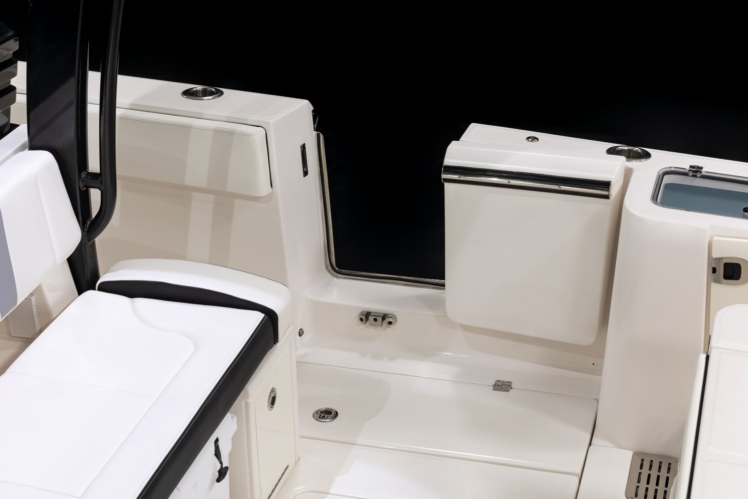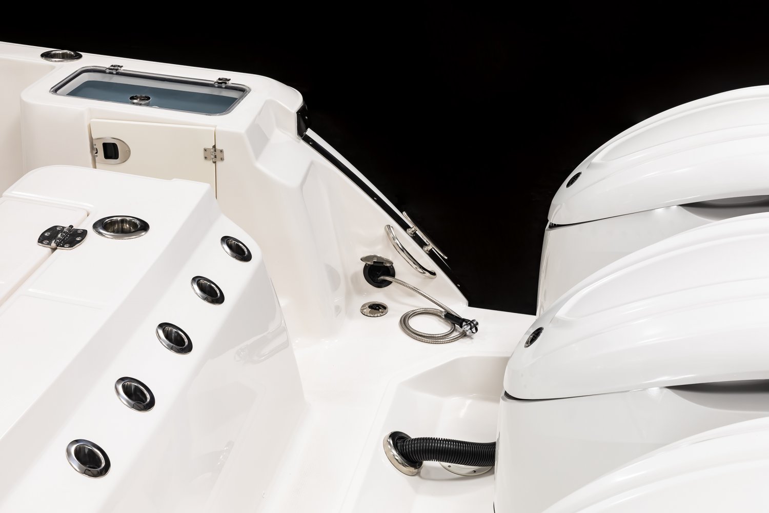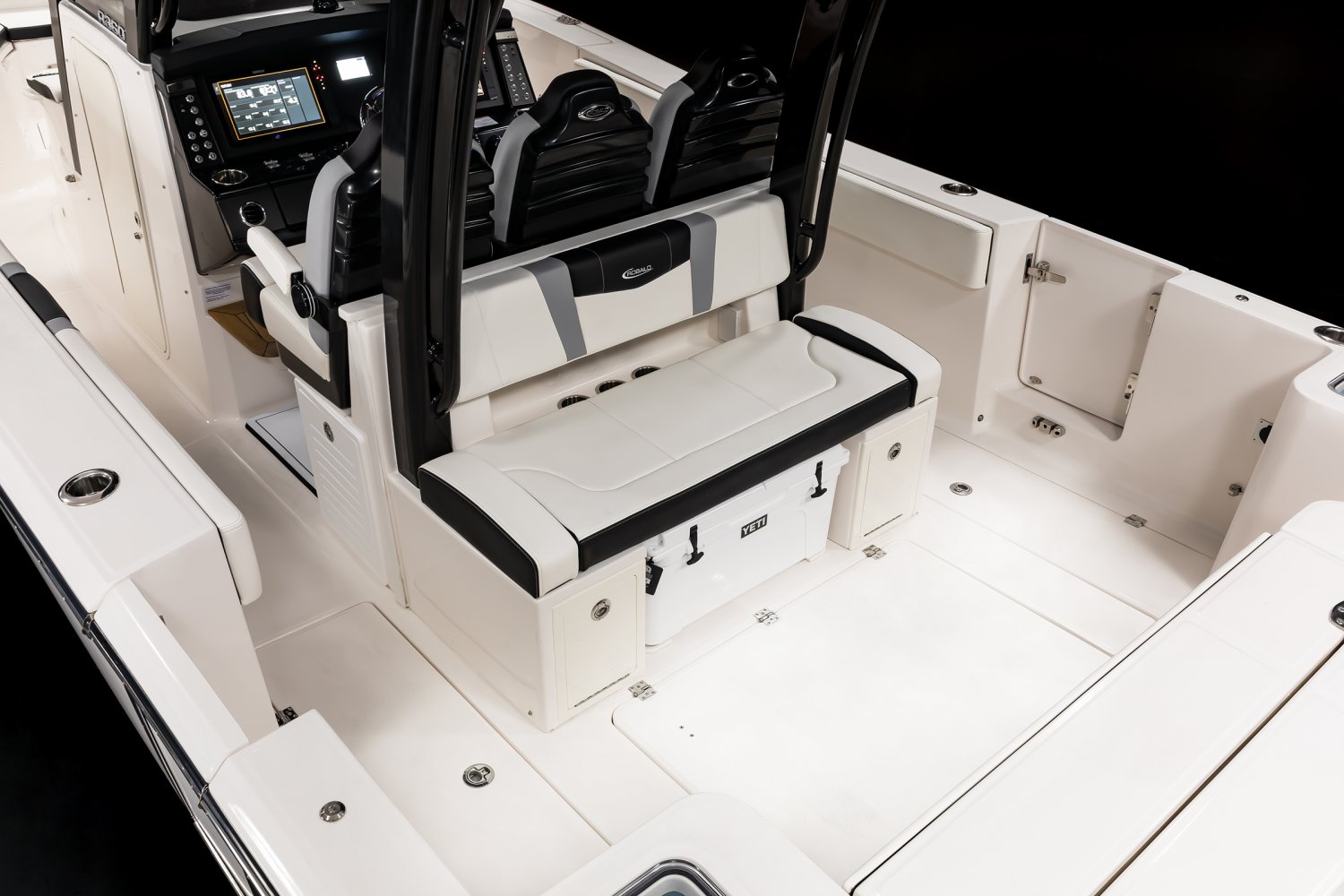Whether you're trolling with hooks in the water or motoring through the tough stuff in search of a trophy catch, Robalo's R300 center console flagship sparks an adrenaline rush unlike any other fishing boat. Unique style. Phenomenal overall performance. Dry ride. Best-in-class features. Featuring two oversized livewells, more than 245 gallons of insulated fish box capacity and a well-equipped bait prep center, the R300 is primed to tackle any fishing adventure. Combine a Kevlar-reinforced hull with a 10-year limited hull warranty and you'll enjoy complete peace of mind every time you take to the water. An abundance of rod holders ensure you're never more than an arm's length away from your equipment. The optional fiberglass T-top is the widest in its class, providing more sun protection than rivals. Robalo's 21-degree variable deadrise Hydro Lift bottom design can tame up to 700-horsepower so faraway GPS coordinates are never far away.