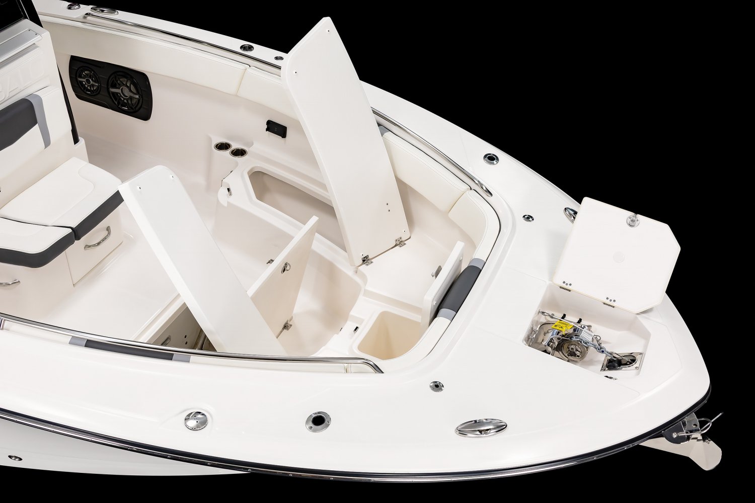• Storage on Top of Console with SeaDek® Mat, Dual Pro USB, and Drains