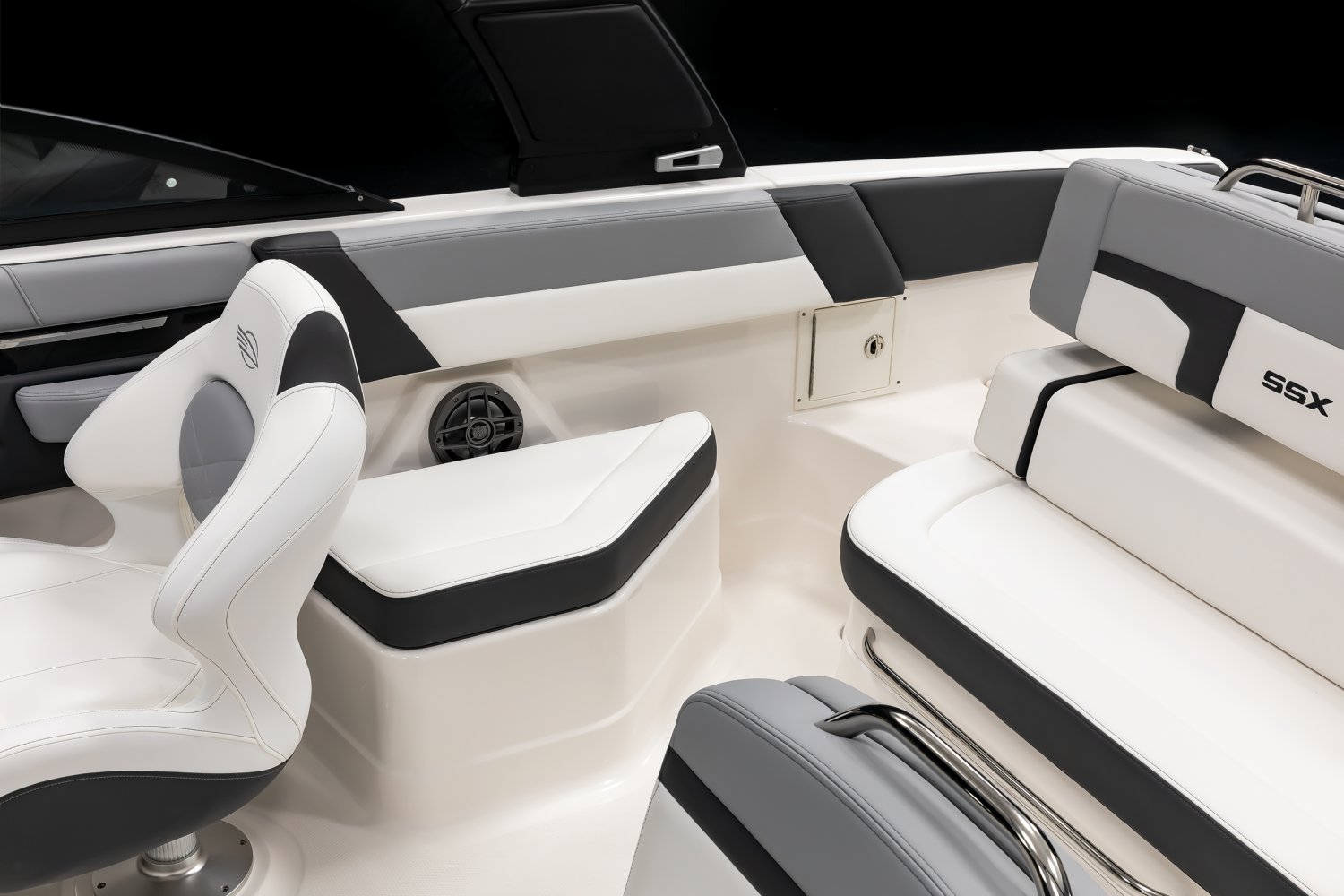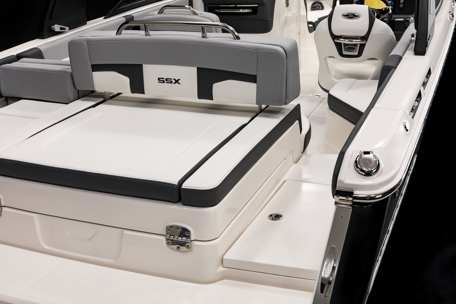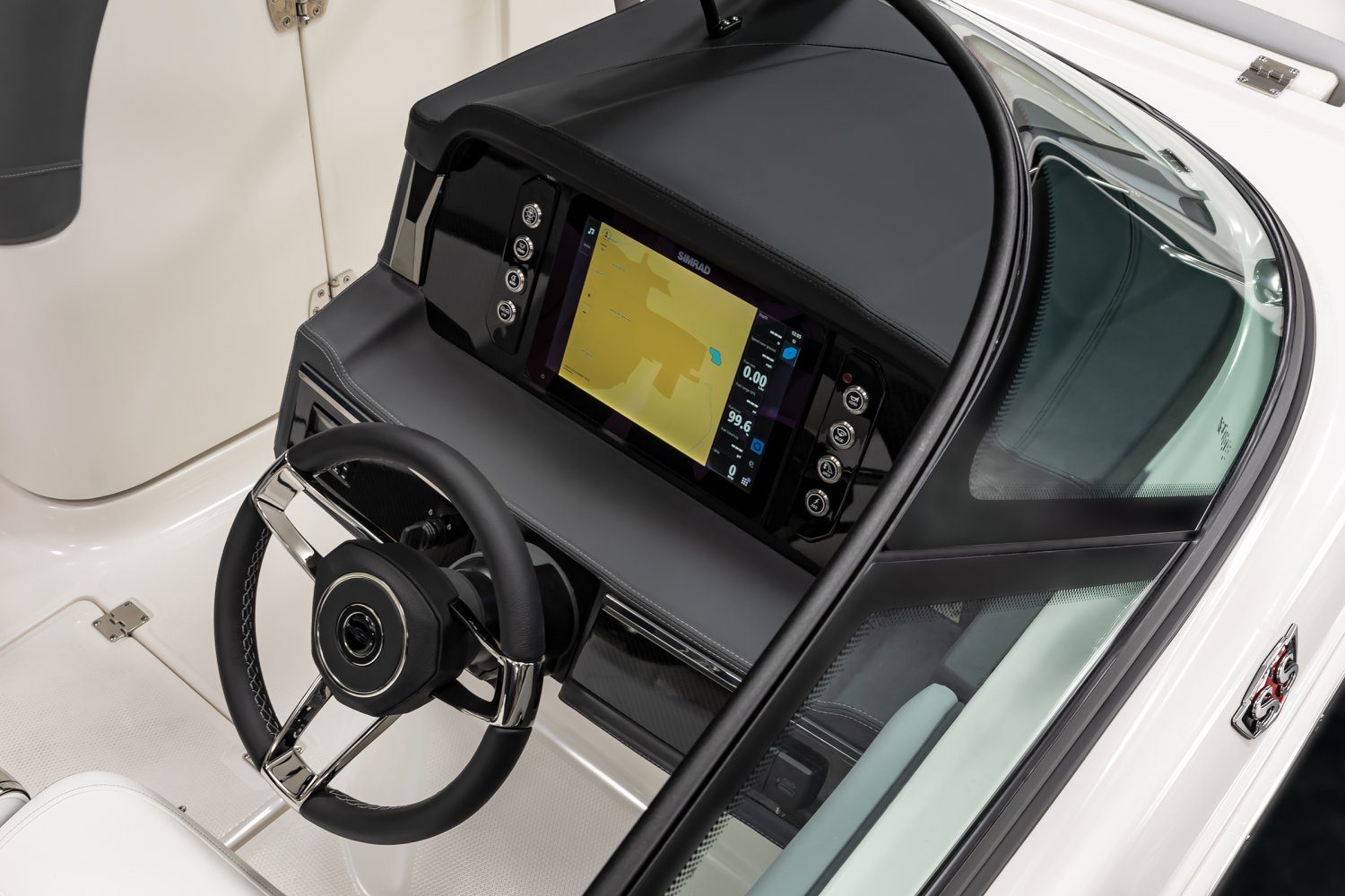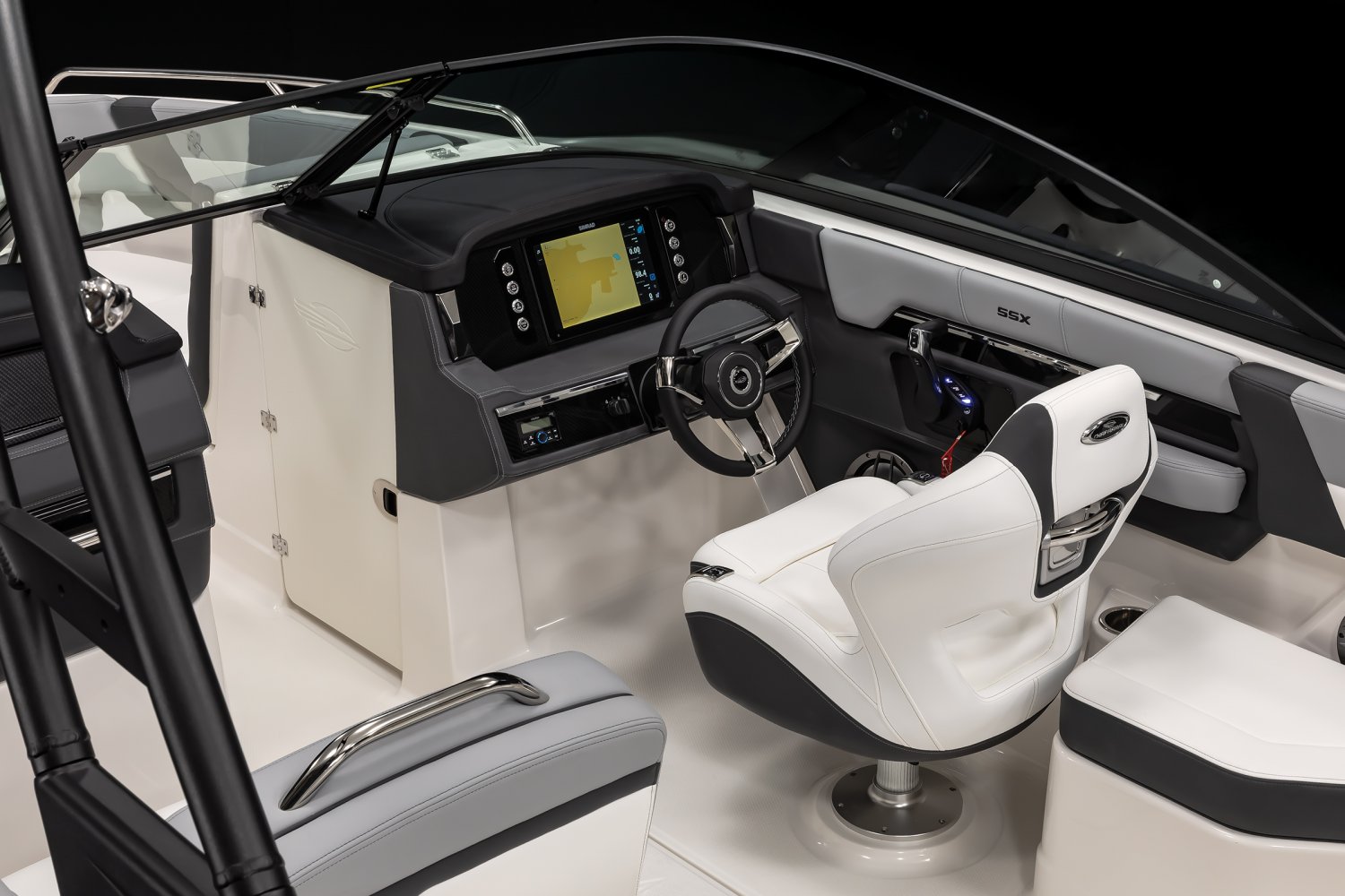 Hull Side Gelcoat - Biscayne Blue Hull Bottom Gelcoat - White Yamaha Four Stroke F250XSB 250HP 25" with Digital Electric Steering Cockpit Interior - Lunar Folding MTX Tower - White Cockpit and Bow Cover Simrad NSX12 Display Porta-Pottie Cockpit Table with Dedicated Storage Snap-In Seadek Cockpit Flooring - Slate 5 Year Premium Level Limited Component Warranty NMMA Grow Boating Fund