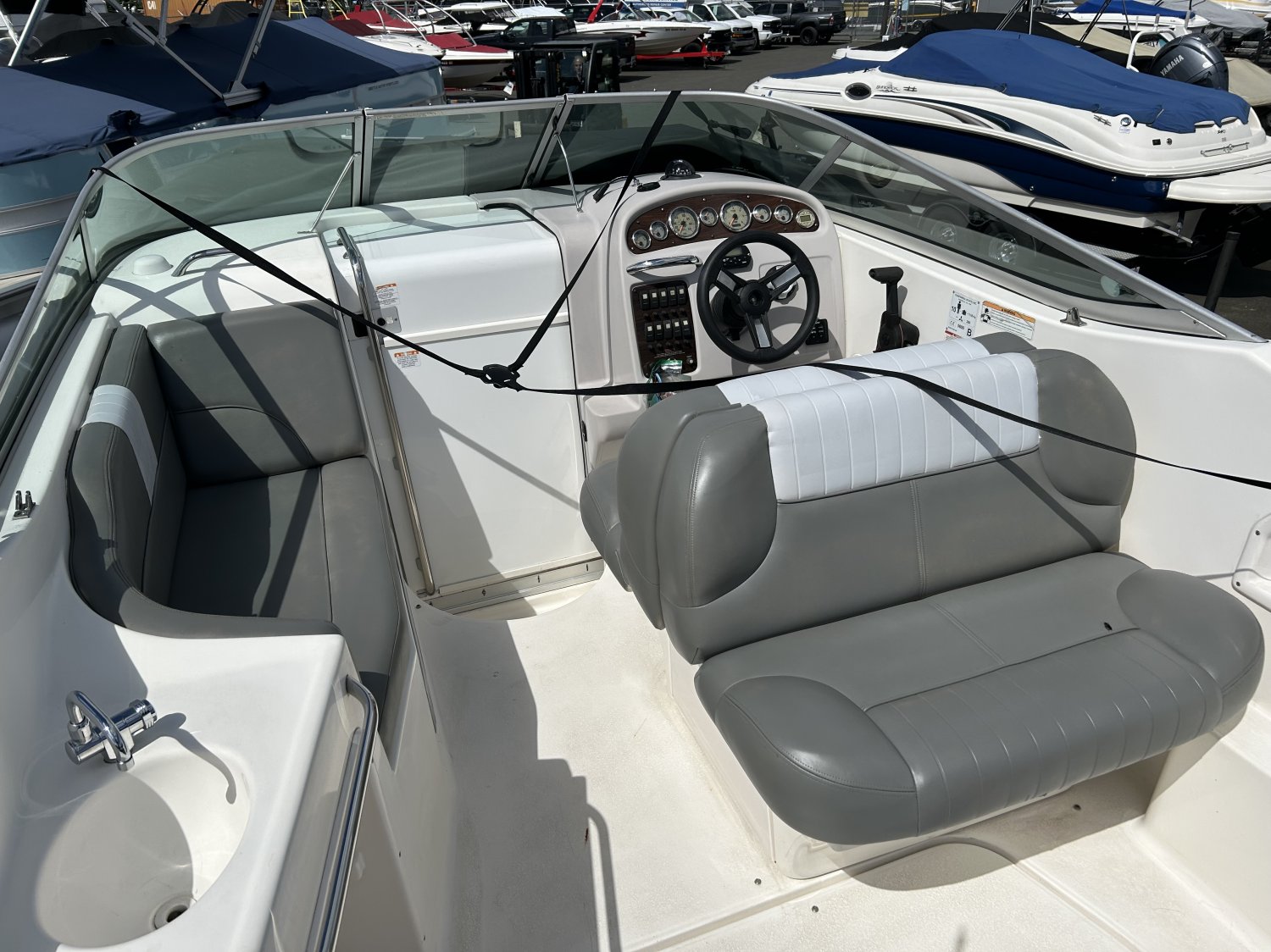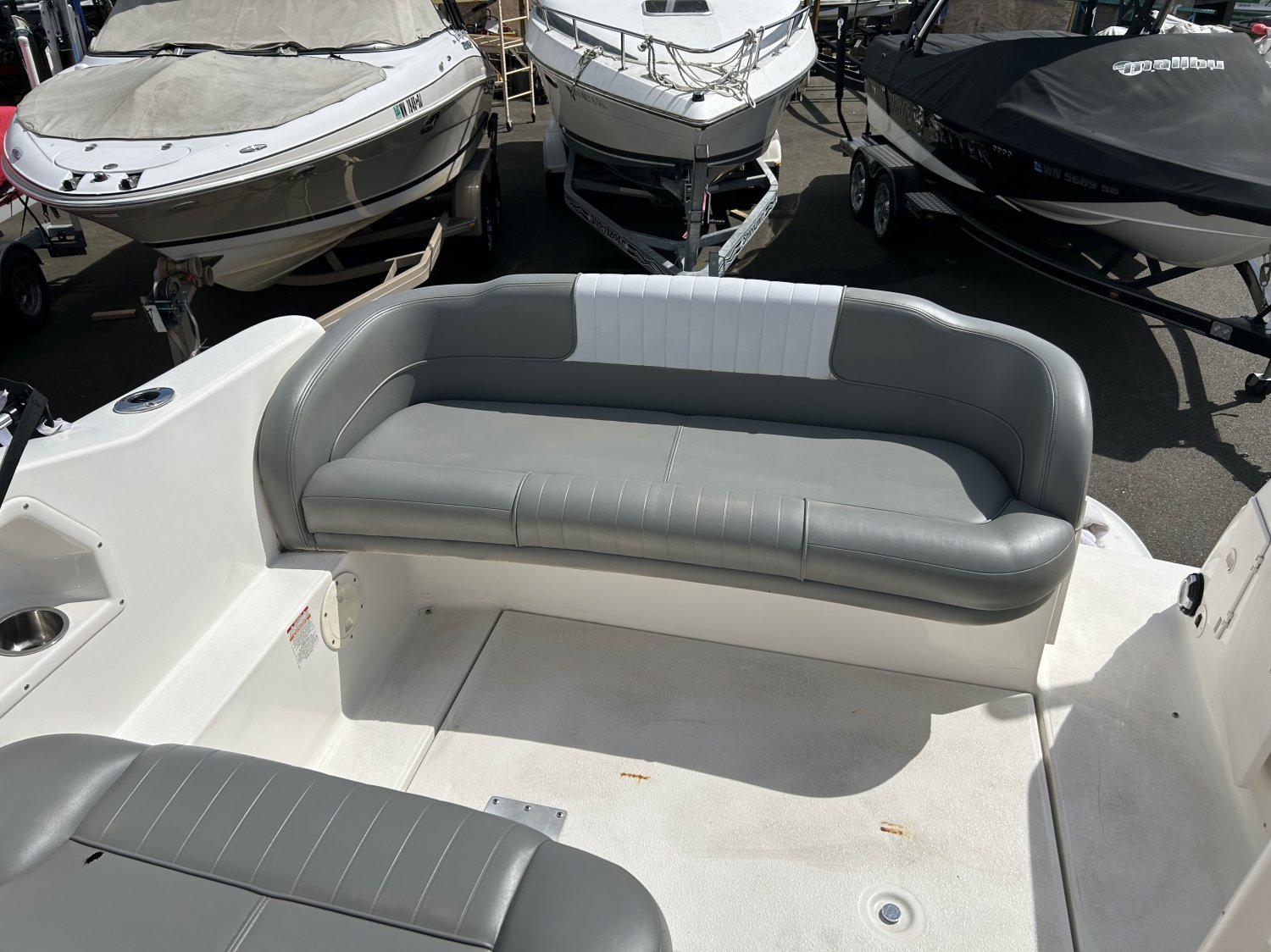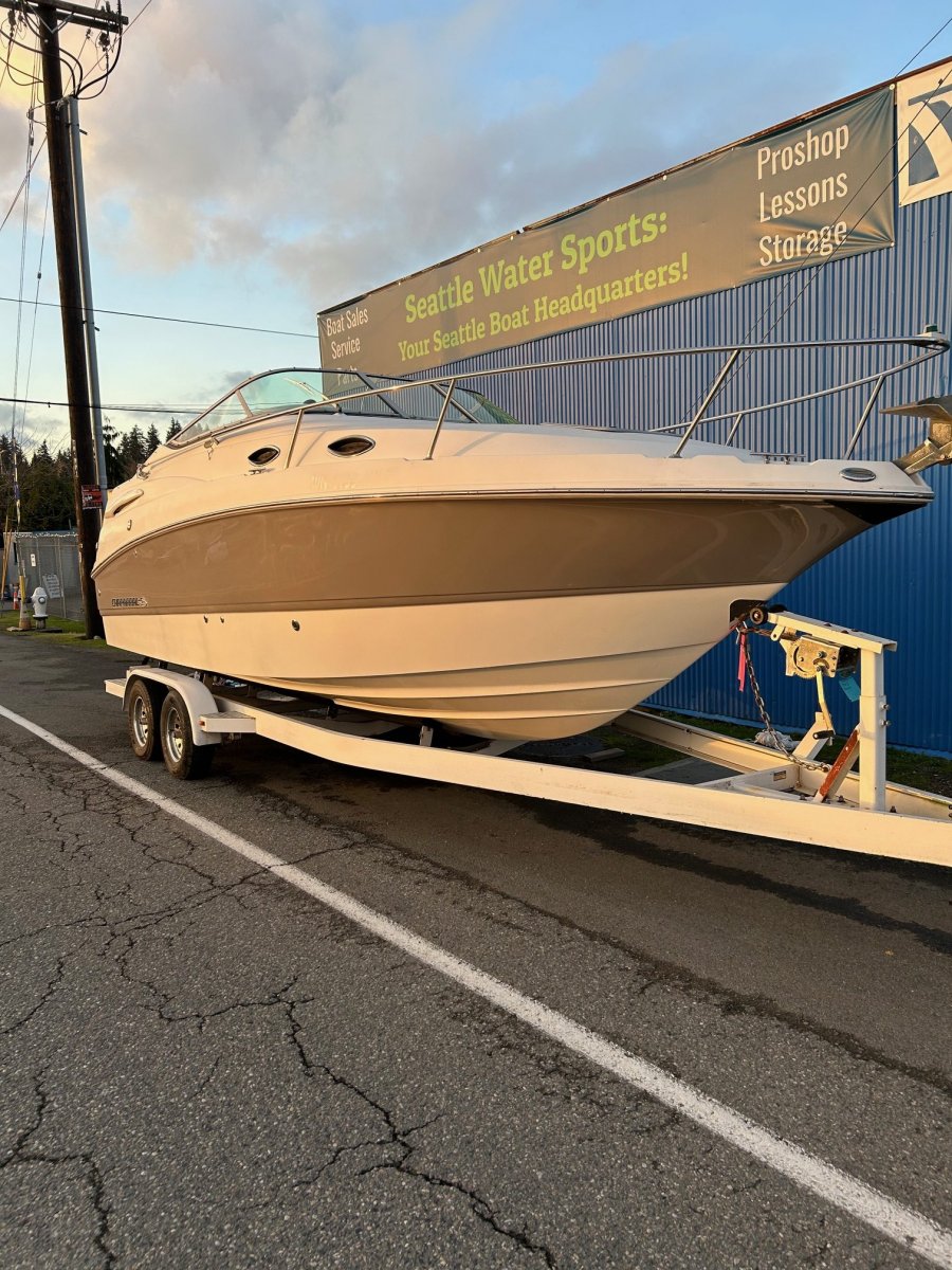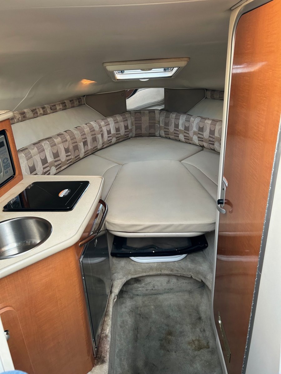 Great boat for cruising and overnighters, hasn’t seen saltwater. Nice V-Berth with bonus sleeper towards rear of cabin and removable table that can be placed in cockpit as well as the cabin. Includes flushable head, fridge, microwave, cook top and sink. Additional sink in cockpit and hot/cold water shower at stern, VHF radio, compass, depth gauge, two cockpit rod holders, and has dockside pump out. The gelcoat is in really nice shape and it’s an excellent runner with great handling in the chop. We just ran it through a full inspection including compression test/engine diagnostics, removed outdrive for inspection including service. Nice family boat for exploring lakes and the San Juan’s!