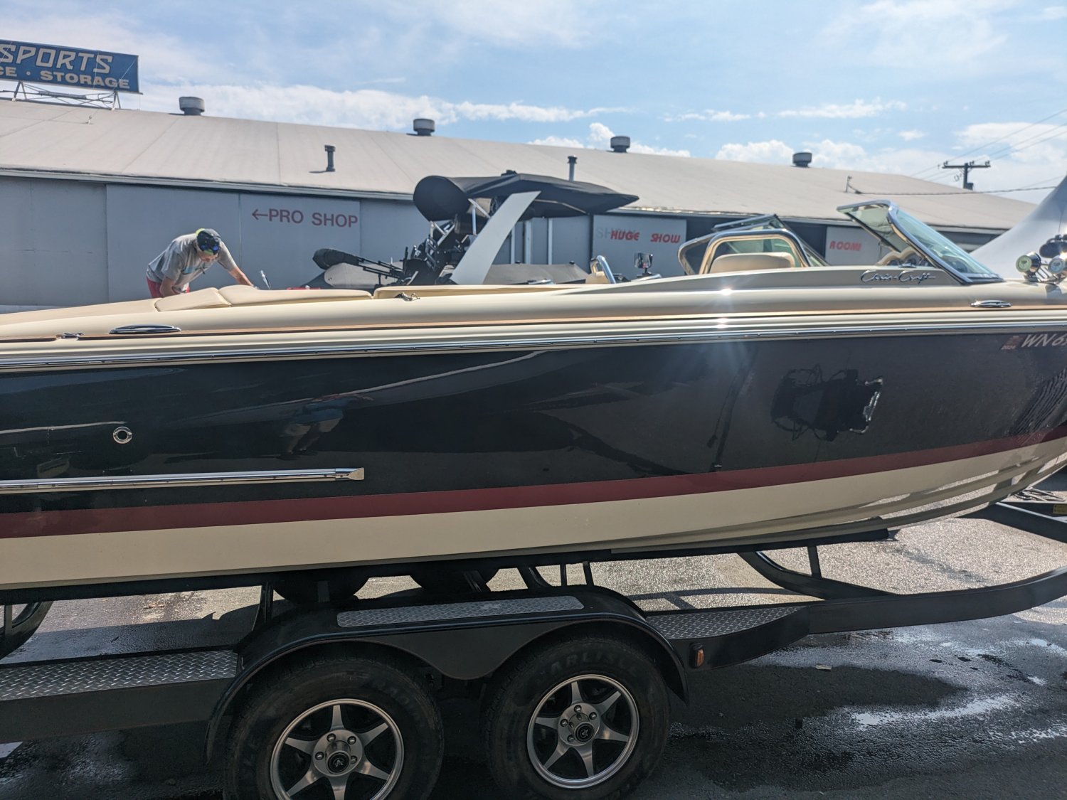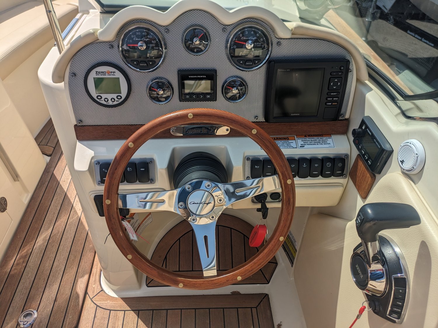 Stand out on the water with this pre-owned 2018 Chris-Craft Launch 27 – Surf Edition, a limited edition model with the exclusive SURF package. Known for its craftsmanship, luxury materials, and elegant design, this Chris-Craft combines performance, style, and functionality. Every detail has been carefully built by hand, from custom stainless-steel hardware to meticulously applied teak. The cockpit features a wide captain’s chair, diamond-pattern stitching, a mahogany steering wheel, stainless steel accents, and a thigh bolster for enhanced visibility. Powered by a Volvo V8-380 FFD engine and with only 95 hours, this 26’ bowrider is equipped for family fun, watersports, and entertaining. Key features include a ballast system, bimini top, dual batteries, extended swim platform, teak swim platform, in-floor storage, pedestal seats with bolster, ski tow bar, stainless cockpit refrigerator, SURF package, and a custom tandem galvanized trailer. Fuel capacity is 77 gallons, and the boat accommodates up to 10 passengers.