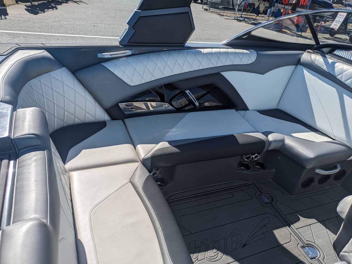This pre-owned 2017 Tige Z1 is a versatile and innovative wakesurf/wakeboard boat that delivers the performance and reputation the Tige Z Series is known for. The Z1 offers standout styling, traditional-bow comfort, and technology that maximizes wave shaping and overall ride quality. This boat comes nicely optioned, including tower speakers, bimini top, TAPS Surf System, Zero Off cruise control, GPS, dual batteries with switch, heater, rear ballast bags, ski mirror, and an upgraded premium stereo system with amplifier and subwoofer. A custom tandem-axle trailer is included as well. With room for up to 14 passengers and powered by the INDMAR 6.2L Raptor 400, this Z1 delivers strong, consistent surf and wakeboard performance. Storage cover and well-maintained features make this an excellent value for anyone wanting a high-quality tow boat at a reduced price point.
