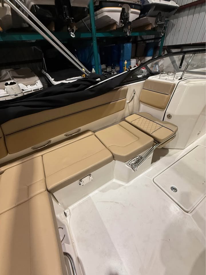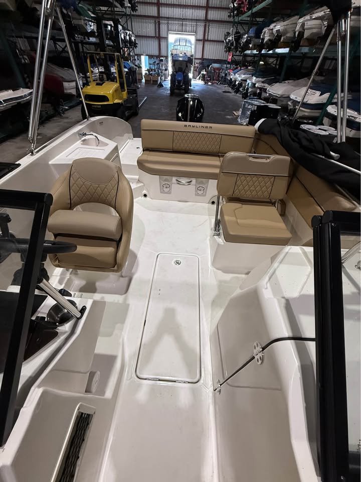 22’ bayliner deck boat, powered with Mercury 200 HP outboard with 130 hours. Used only in fresh water, Power steering, stainless prop, dual battery system, ski tow, head compartment for pottie, cockpit and bow covers, bimini top, BT stereo with 4 speakers, rear facing dual position lounge, digital depth finder, cockpit table, pressurized water system with sink, tandem axle trailer with brakes, warranty included, $48,795, financing available. Winter storage through 6/2026 included,