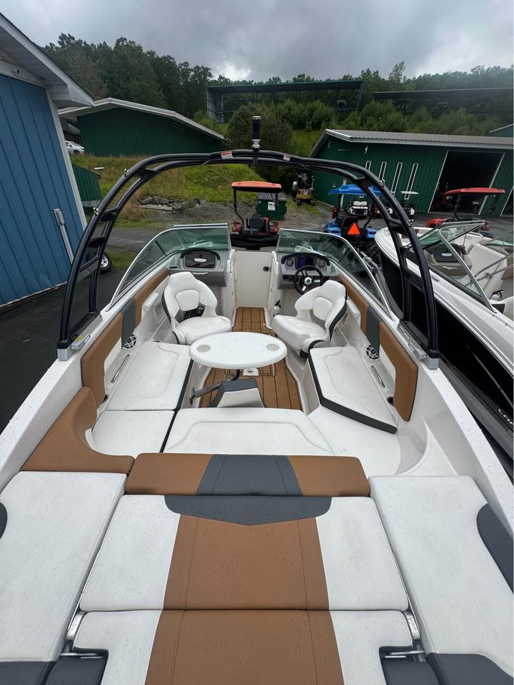 2023 Chaparral 23 SSI, powered with Mercruiser 6.2 300 HP and Bravo 3 with only 22 hours. Black sidewalls, cayenne interior package, folding velocity arch, cockpit and bow covers, Simrad GO7 touchscreen chartplotter/fishfinder, dual battery system, snap in sea deck flooring, docking lights, color matched trailer with aluminum wheels 4 wheel disc brakes, spare tire kit, built in cooler, dedicated anchor locker, clarion BT stereo, $79,000 financing available - consignment unit , no trades