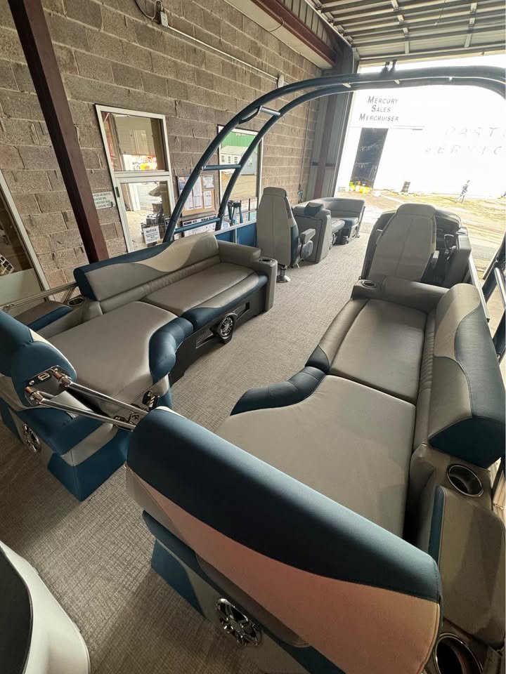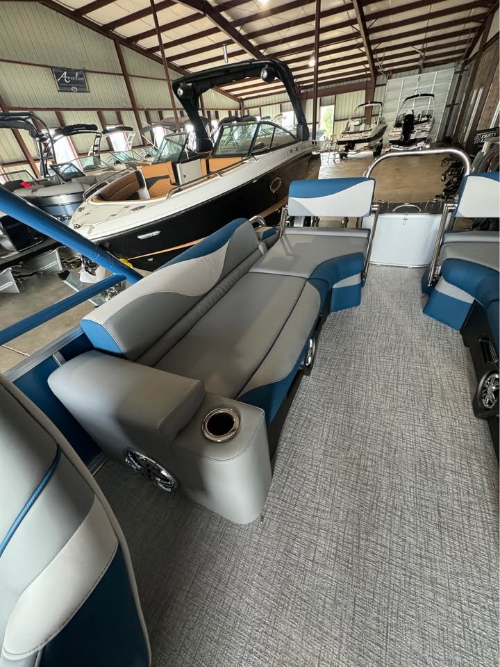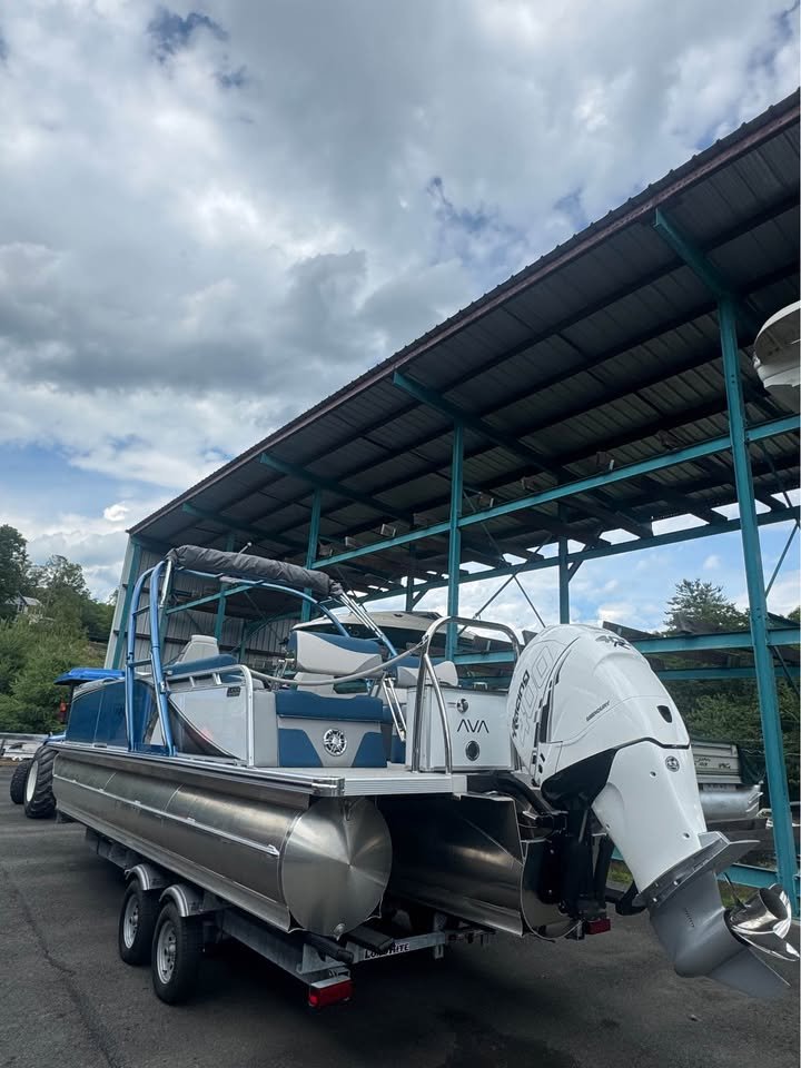 2025 Avalon Pontoons 25’ LSZ Quad Lounge Shift Platinum Edition, powers by Mercury Racing 400, features include: Lighted cupholders and speakers Admiral High Back reclining chairs Ultra-fine vinyl upgrade Tower 27” Wave-glider pontoons Solid side & bottom keels SIMRAD NSX7 Seat Covers Under deck lighting high performance sound system Load Rite trailer included