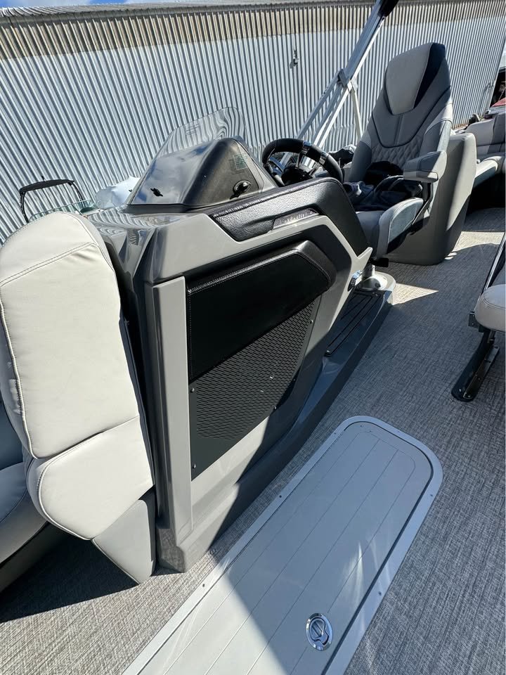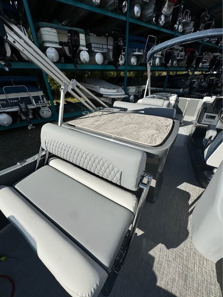 PRICE ADJUST $110,000 6/15 2025 Avalon Pontoons 25' Catlina Platinum Entertainer Tritoon. Powered by Mercury Marine 250 V8 Verado Cold Fusion White: Standard Features Include: 25X25 center tube Nose Cone Side Keels Blue Canvas Seat Covers Admiral High Back Reclining Chair *****Dash / Electronics Features***** High Performance Sound Package 6 lighted speaker, sub & Amp Fusion RA-670 6 Fusion XS RGB Speakers Fusion 6-Channel Amp Fusion XS Subwoofer in Stand USB Input w/ AUX Dual USB Charging Port in Stand Dual Battery Management CAT LSZ Long Main Harness 129657 Graphite Helmstand Commander III Fiberglass Helmstand Raised Platform for Helmstand Courtesy Light Touchscreen Dash Panel 12V Power Plug Verado V8 (250-300) Prerig Windshield Michigan Steering Wheel *****Steering Features***** Verado Power Assist Steering *****Deck Features***** Riptide Shadow Flooring HD Hat Channel Construction Heavy Duty Rub Rail with w/Insert Motor Rigging Cover Polished Corner Caps 6 Pull Up Cleats Extended Deck *****Furniture Features***** 6000 Series Furniture Ultrafine Koolfab Graphite Base Vinyl 1 Ultrafine Silver Base Vinyl 2 GB Lighted cupholders Greywood Rectangle Table w/ Base Trash Can for Flip/Rev Lounge Arm Bow USB Charging Port SST Inserts for Cladding Booth Seating Privacy Station in Privacy Arm Charcoal Cladding *****Lighting Features***** RGB Lighting Package RGB Mood Lighting RGB Underwater Lights RGB Lights Under Rub Rail *****Misc Features***** Fire Extinguisher 1 Lillipad Easy Step Ladder Aluminum Undersheeting 6 High Performance Lift Fins 25 Inch Transom Port and Star Pump Bracket 38 Gallon Direct Fill for Center Tube In-Tube Ski Storage Solid Side Keels Solid Bottom Keels 8.5 X 10 Square Frame 2nd top is a 8.5 Ft Square Frame with Dual Top Canvas Connector 4 Fender Holders Blue Wall Skins 2nd Wall Color is Blue Platinum Badging RGB DECO Docklights Large Smoked Chrome Hi-Flex Logos Composite Wall Panels All Freight, Prep Coast Guard kit are included Tax, Title, Reg fee's & Trailer not included.