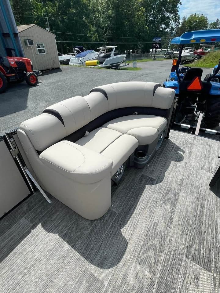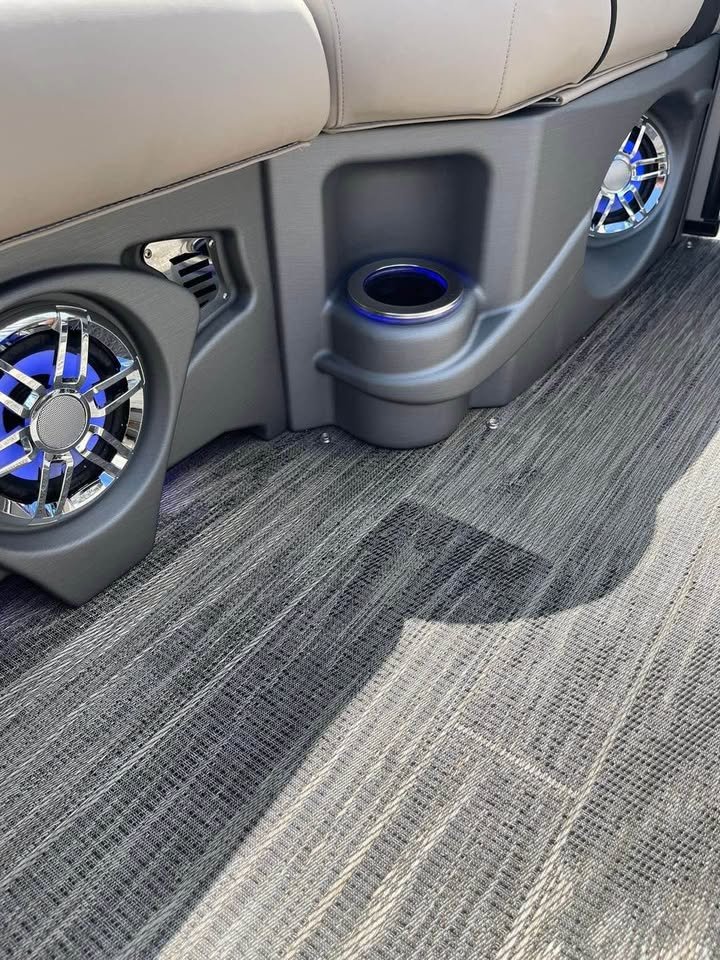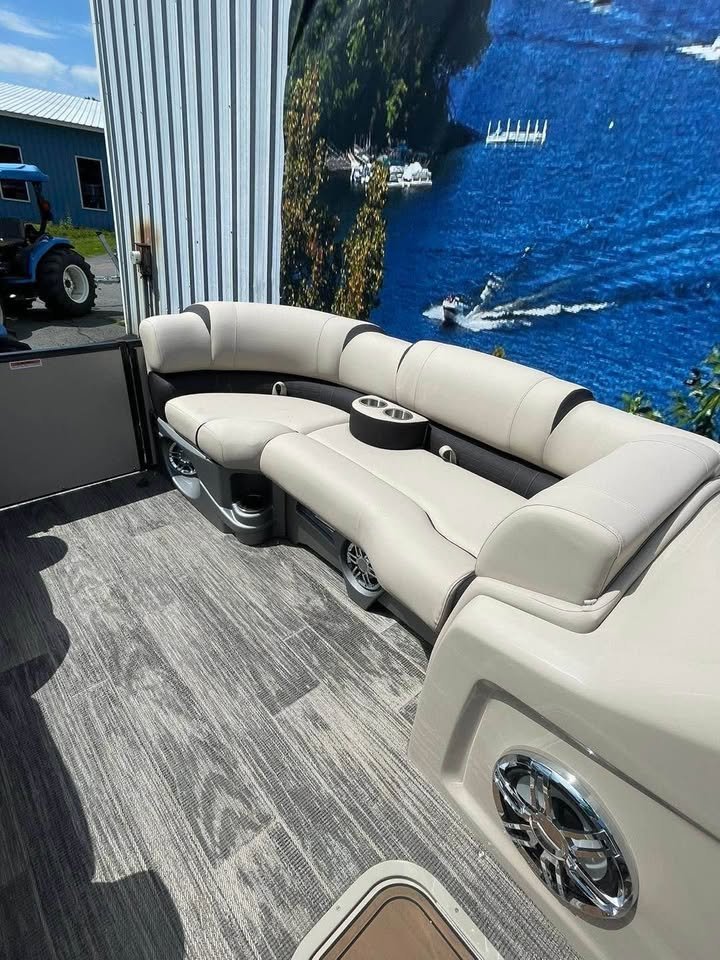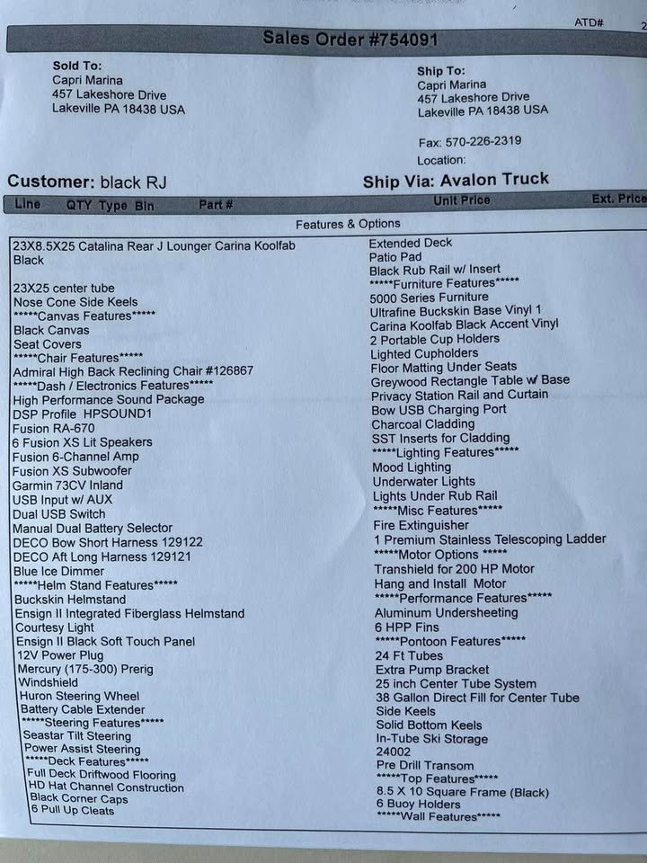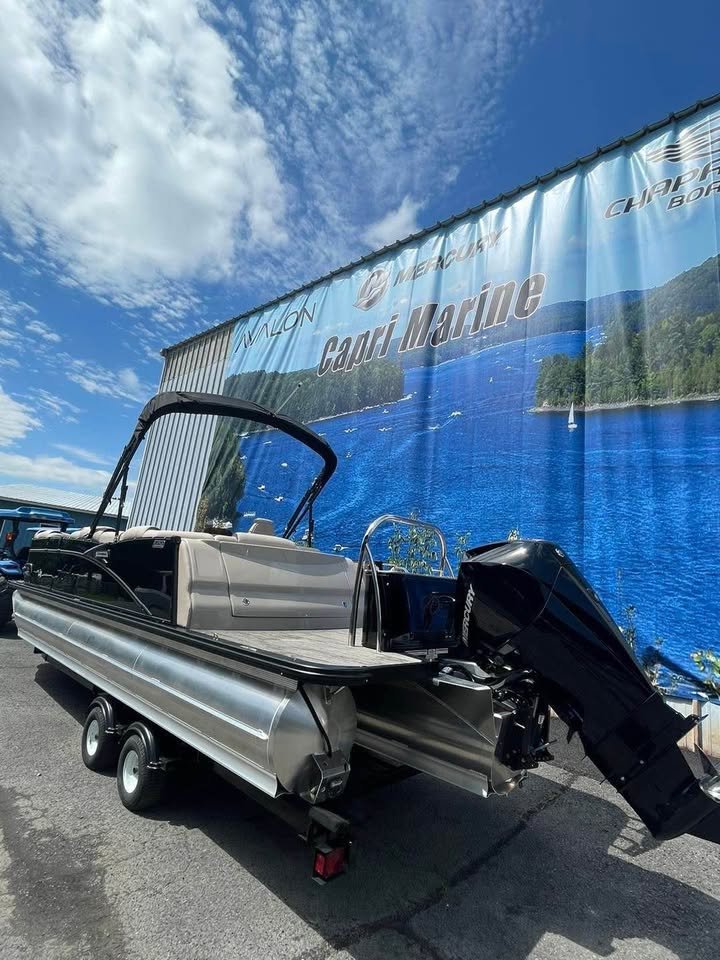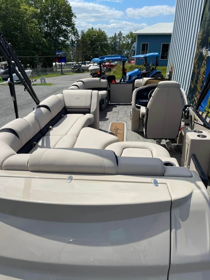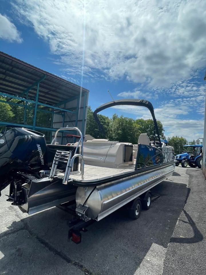 2024 Avalon 23’ Catalina Platinum Edition Rear J Tri-toon, Powered by Mercury 200 (13 hours) with Power assisted Hydraulic steering additional features include: Dual battery system 6 high performance lift fins Side impact keels Bottom keels 6 pull up cleats Driftwood flooring Furniture series upgrade Deco dock lighting Interior mood lighting Under deck and under water lighting 6 lighted speaks plus lighted sub Fusion high performance audio with amp Black out package Seat covers Cockpit table Sport high back decking chair In tube storage locker Stainless cladding insets Under seat matting, Patio pad deck extension,Portable cup holders, Fiberglass helmstand Garmin 73CV inland GPS/fish finder, Buoy holders full factory warranty for motor and engine begging with purchase (dealer demo). Indoor winter storage included through 6/1/26