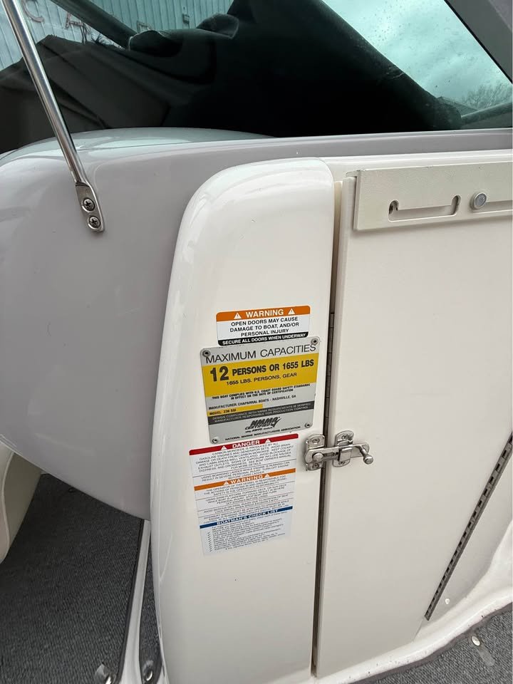 Chaparral 236 SSI, powered by Mercruiser 5.0 MPI, with only 290 hours. Features include , battery switch ,snap in carpeting, cockpit table, drop down cleats, bow and stern telescoping ladders, dual bolster chairs, integrated swim platform, docking lights, tandem axle trailer, XL Bimini top, cockpit and bow covers. Included at sale is complete bellows replacement. Warranty included , financing available , consignment unit - no trades
