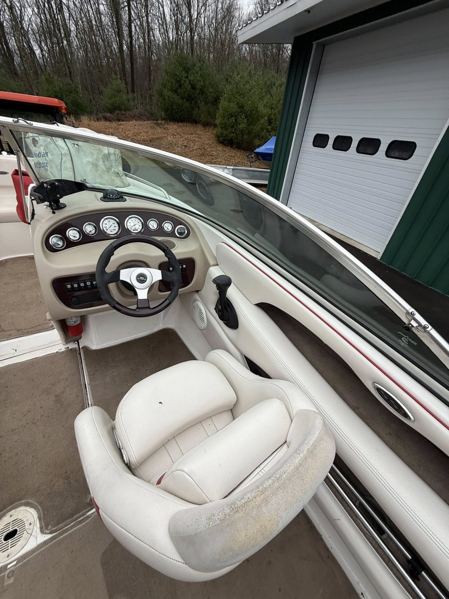 2001 Chaparral 196 SSI. Powered with Mercruiser 5.0 EFI, 402 hours. Purchased and serviced at Capri since new. Bellows replaced spring 2025. Features : battery switch, auto bilge, snap in carpeting, new stand up height Bimini (not pictured) Garmin fish finder, docking lights, drop down cleats, winter storage cover, brand new Marla’s cover (cockpit and bow or mooring buyers choice) included in the sale price. Available without for discount. 2021 Venture aluminum trailer with brakes included, warranty included, financing available. Consignment unit - no trades , $16,895